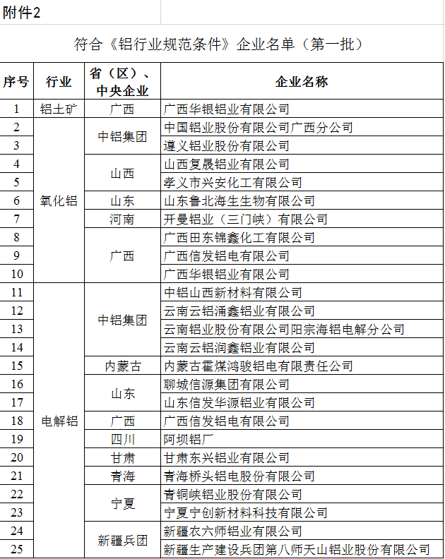 附件2.符合《铝行业规范条件》企业名单(第一批).et