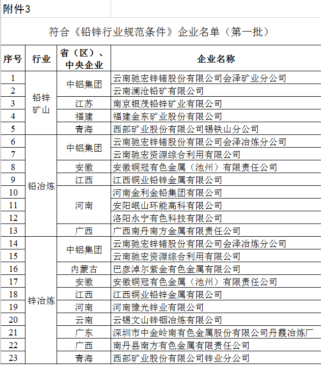 附件3.符合《铅锌行业规范条件》企业名单(第一批).et