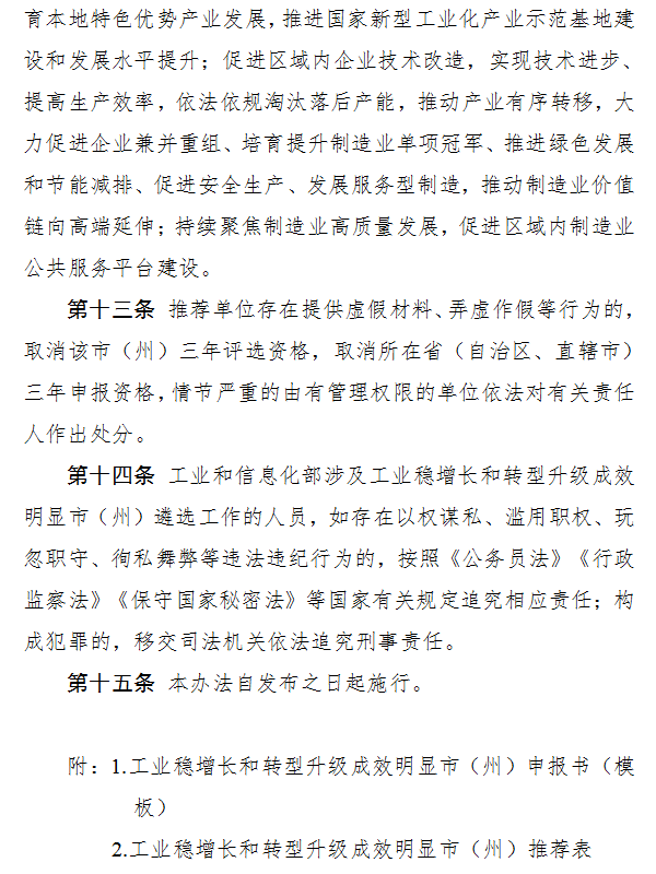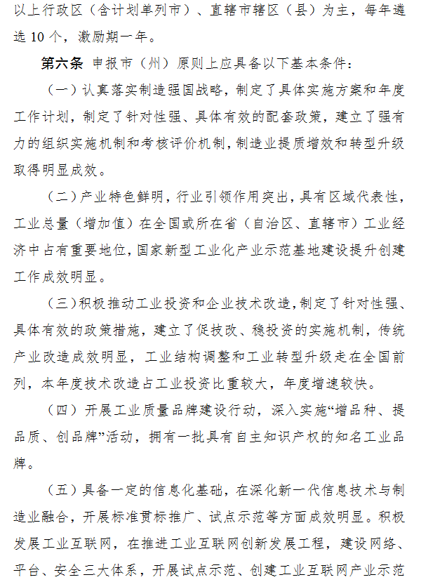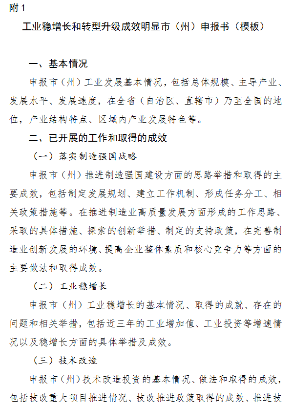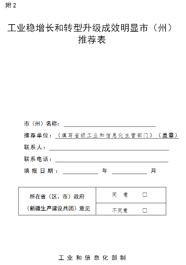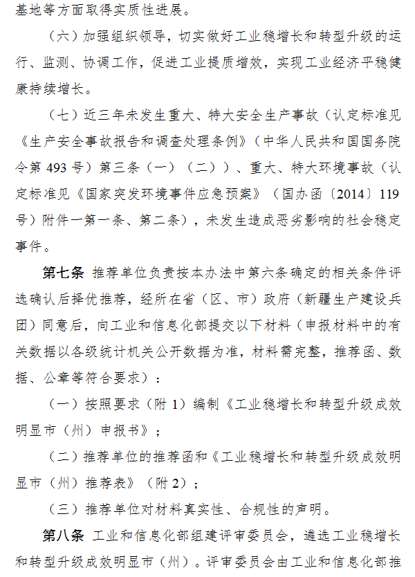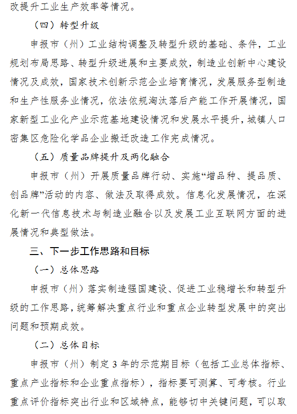 二、请各地兼顾工业稳增长和转型升级两个方面,择优推荐地级行政区1个;计划单列市由所在省工业和信息化主管部门推荐,不占用所在省名额。