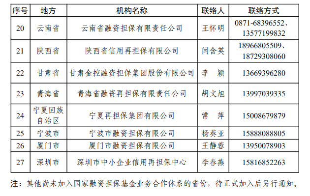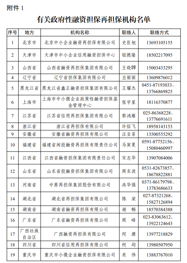1.有关政府性融资担保再担保机构名单