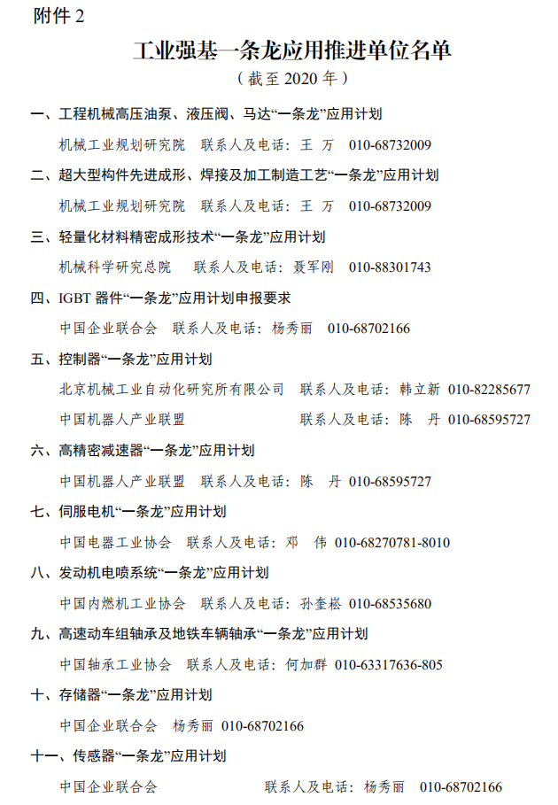 2.工业强基一条龙应用推进单位名单(截止2020年)