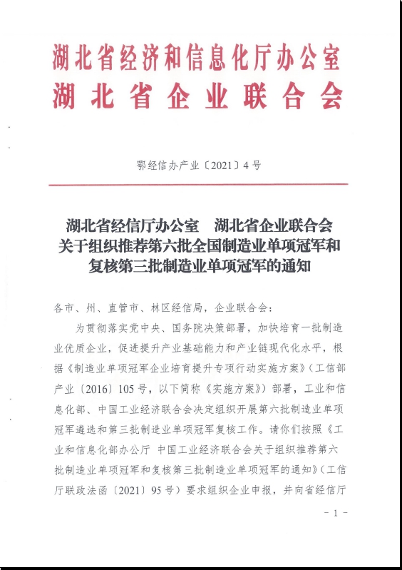 工业和信息化部办公厅 中国工业经济联合会关于组织推荐第六批制造业单项冠军和复核第三批制造业单项冠军的通知