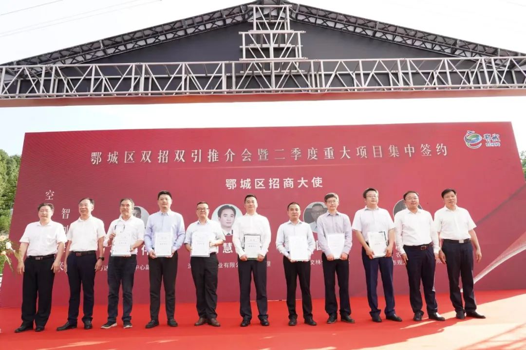 6月25号,鄂城区举行双招双引推介会暨二季度重大项目集中签约活动,共签约项目15个,总投资115亿元。签约项目涉及临空产业、现代物流、高端智能制造、商贸服务、新能源新材料等新兴产业。区委书记董国平,区委副书记、区长夏鑫见证项目签约并为鄂城区新任招智顾问、招商大使颁发证书。据悉,上半年鄂城区合计签约亿元以上项目42个,总投资额369.6亿元。