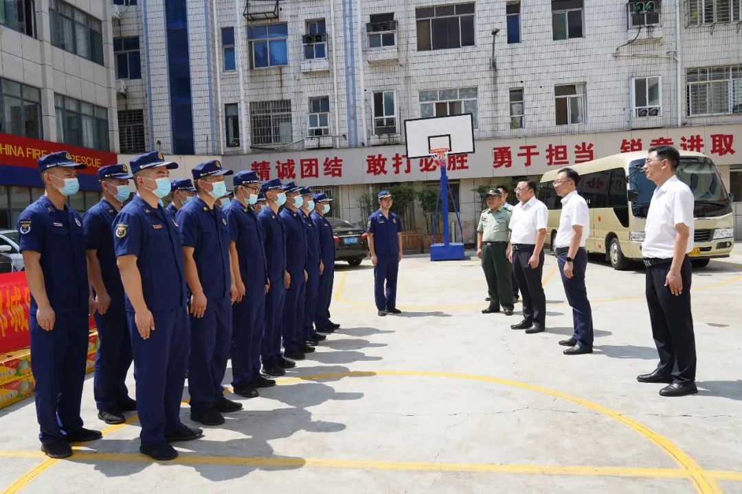 在鄂城区消防救援大队,董国平、夏鑫与消防官兵一一握手 ,亲切交谈。夏鑫表示,全体消防指战员在全区消防救援、疫情防控、防汛救灾、应急处突等方面发挥了重要作用,展现了“特别能吃苦、特别能战斗、特别能奉献”的精神,区委区政府对大家的工作给予高度肯定。今年是党的二十大召开之年,职责使命更加重大而光荣,希望大家按照区委的要求,进一步扛起维护社会安全稳定、维护群众生命财产安全的政治责任,护一方平安,促一方发展,确保全区政治社会环境持续安全稳定,以为千家万户保驾护航的实际行动和优异成绩向党的二十大献礼。