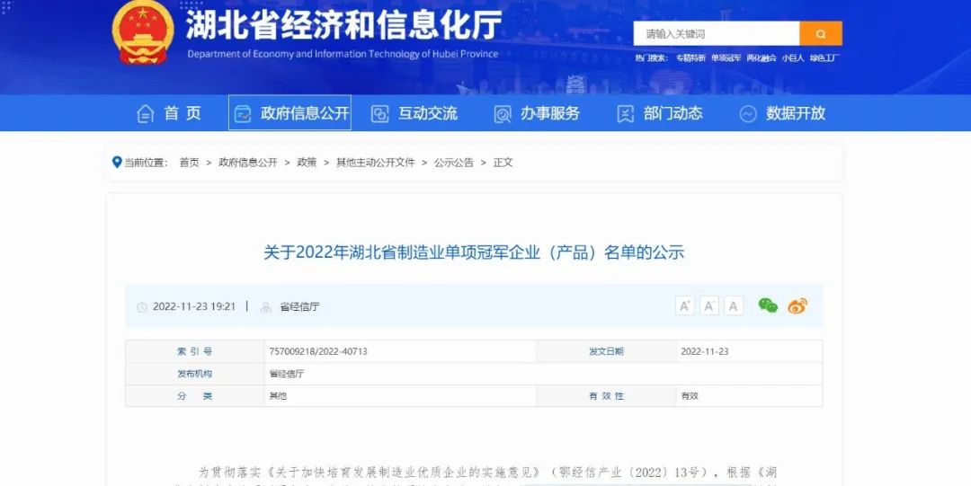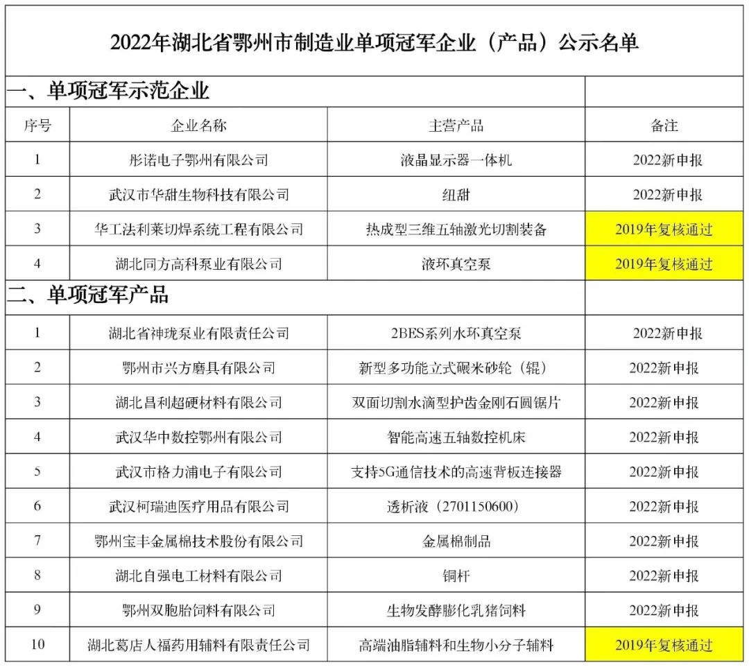 其中,华工法利莱切焊系统工程有限公司等4家企业被评为制造业单项冠军企业,湖北昌利超硬材料有限公司等10家企业的相关产品被评为制造业单项冠军产品。
