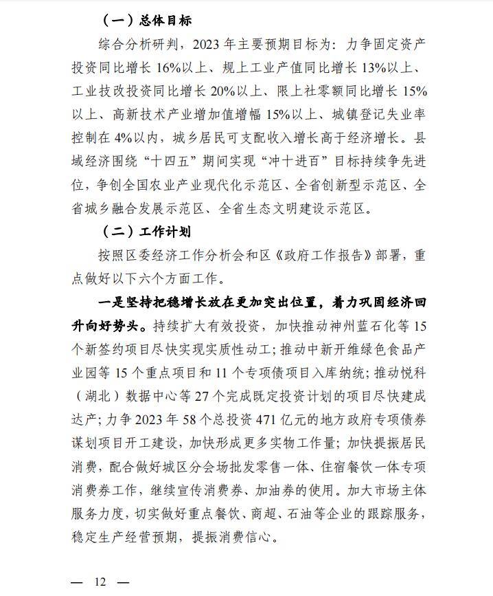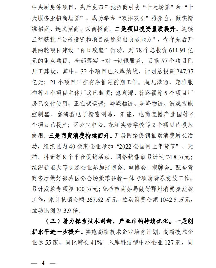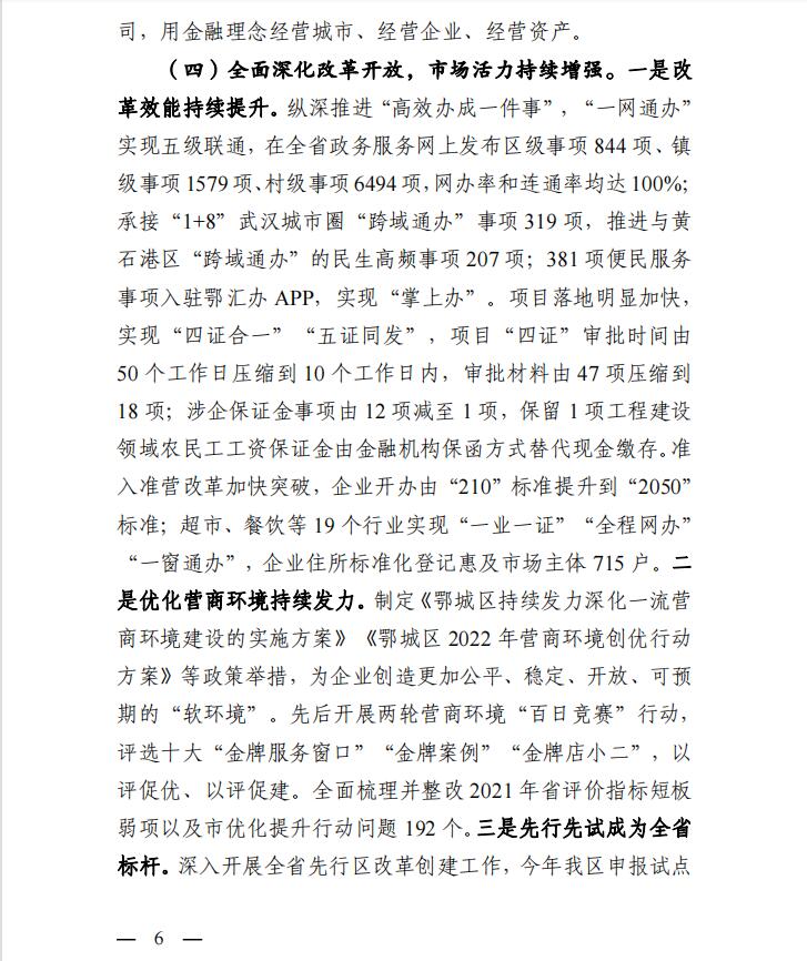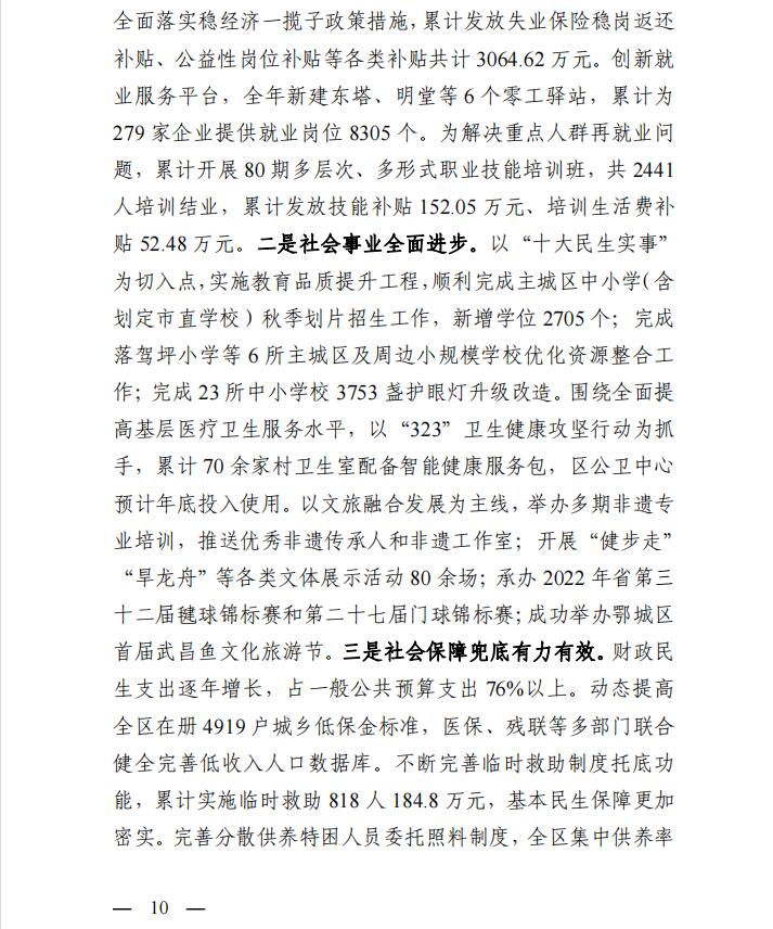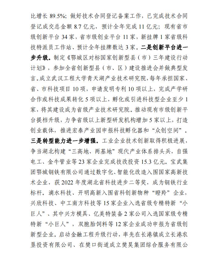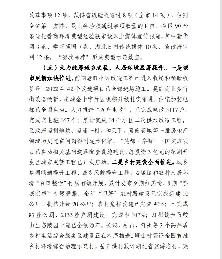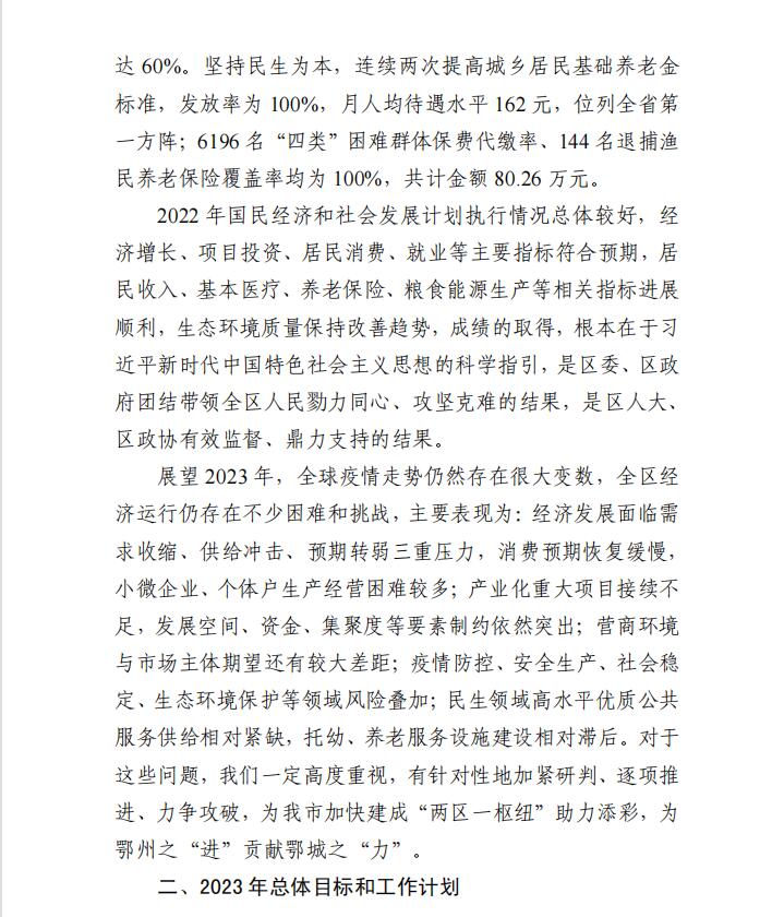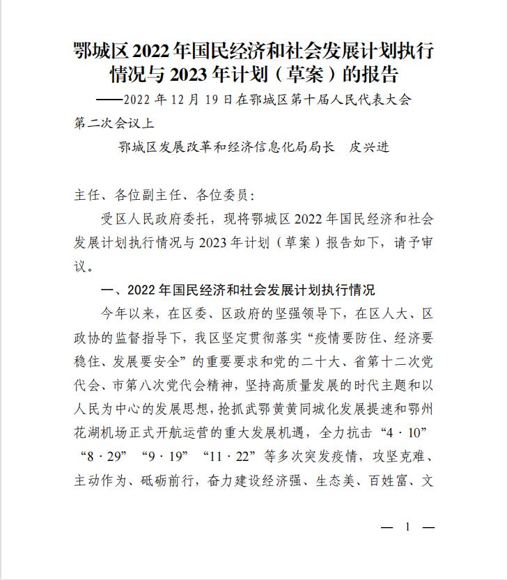鄂城区2022年国民经济和社会发展计划执行情况与2023年计划(草案)的报告