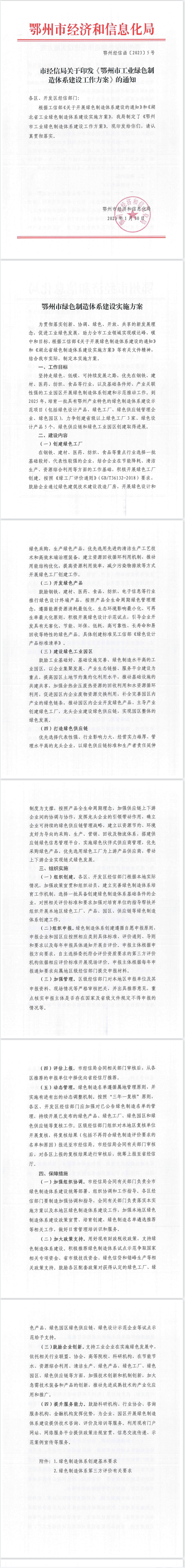 市经信局关于印发《鄂州市工业绿色制造体系建设工作方案》的通知