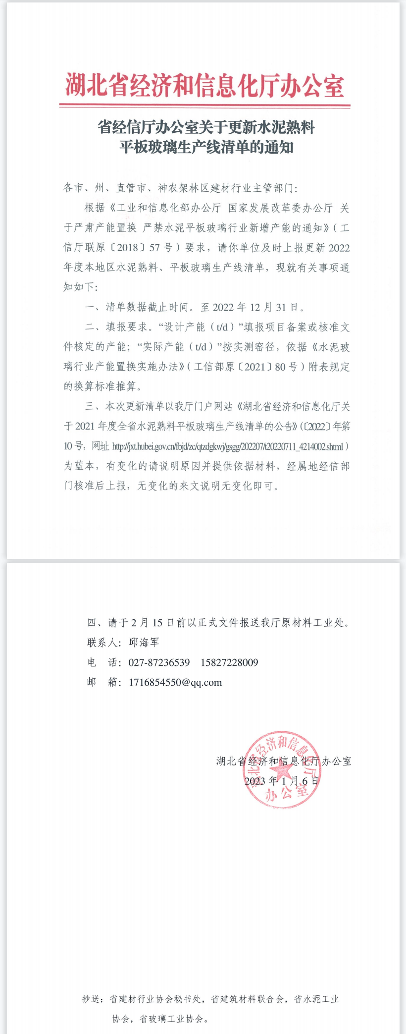 省经信厅办公室关于更新水泥熟料平板玻璃生产线清单的通知