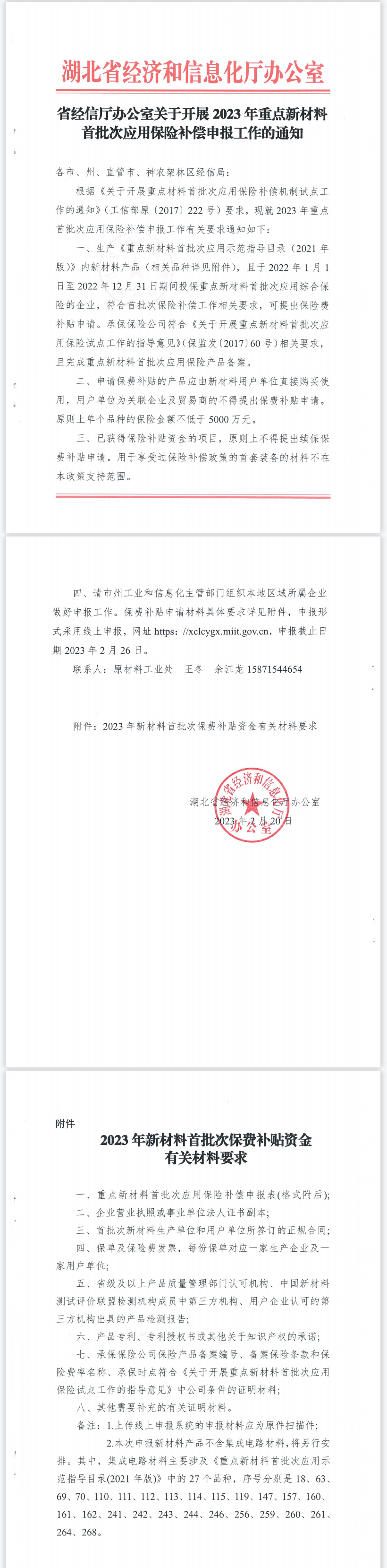 省经信厅办公室关于开展2023年重点新材料首批次应用保险补偿申报工作的通知