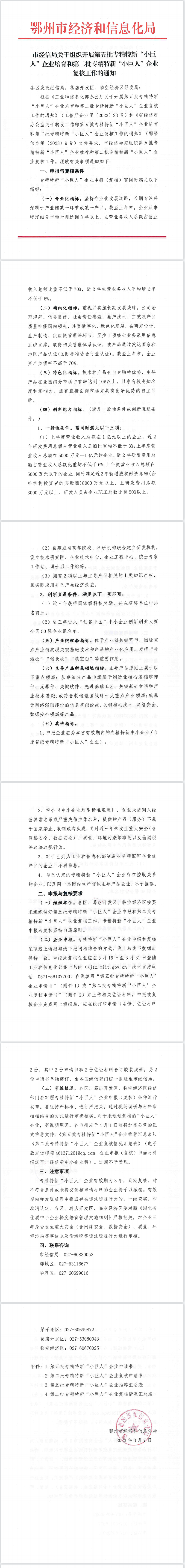 市经信局关于组织开展第五批专精特新“小巨人”企业培育和第二批专精特新“小巨人”企业复核工作的通知