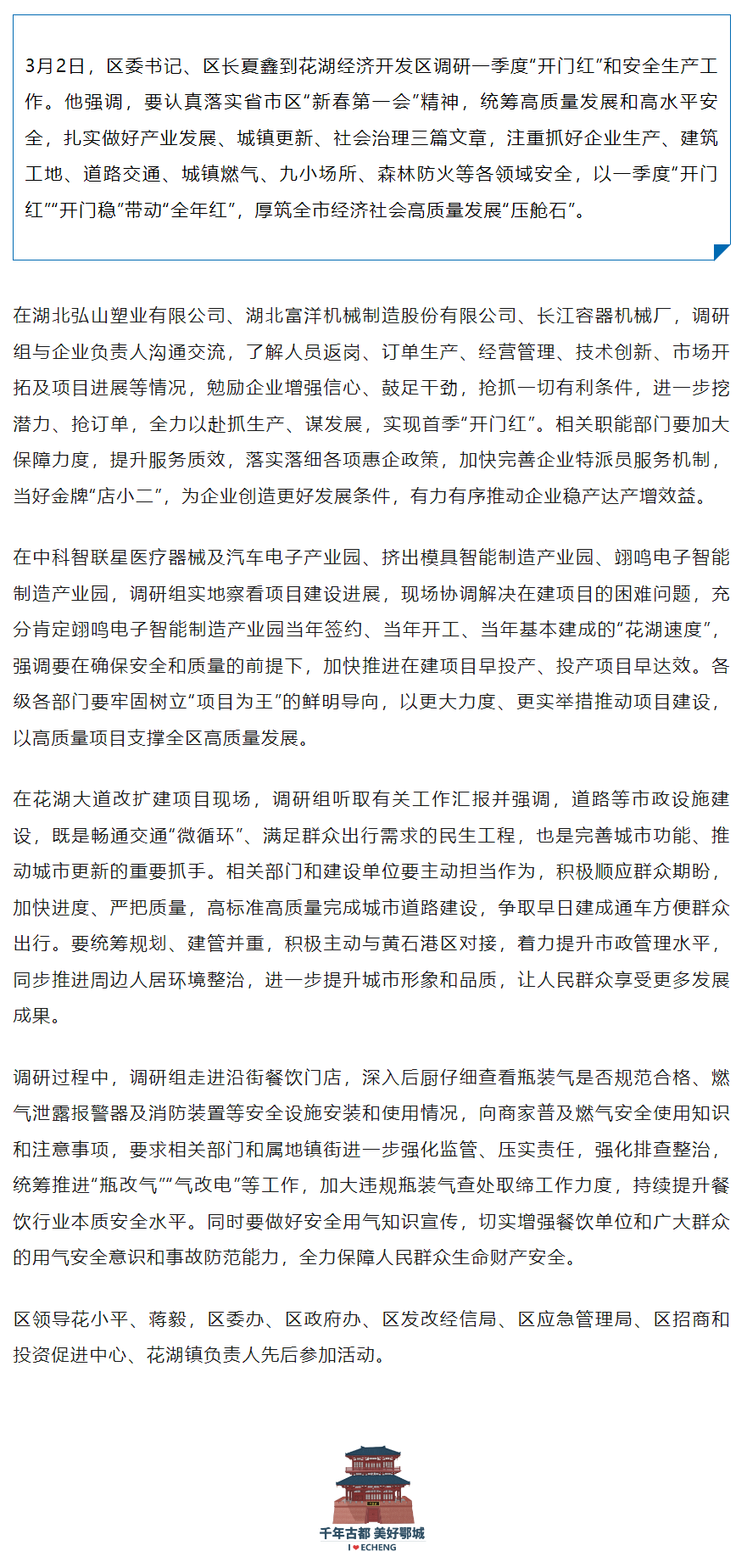 夏鑫调研花湖经济开发区一季度“开门红”和安全生产工作