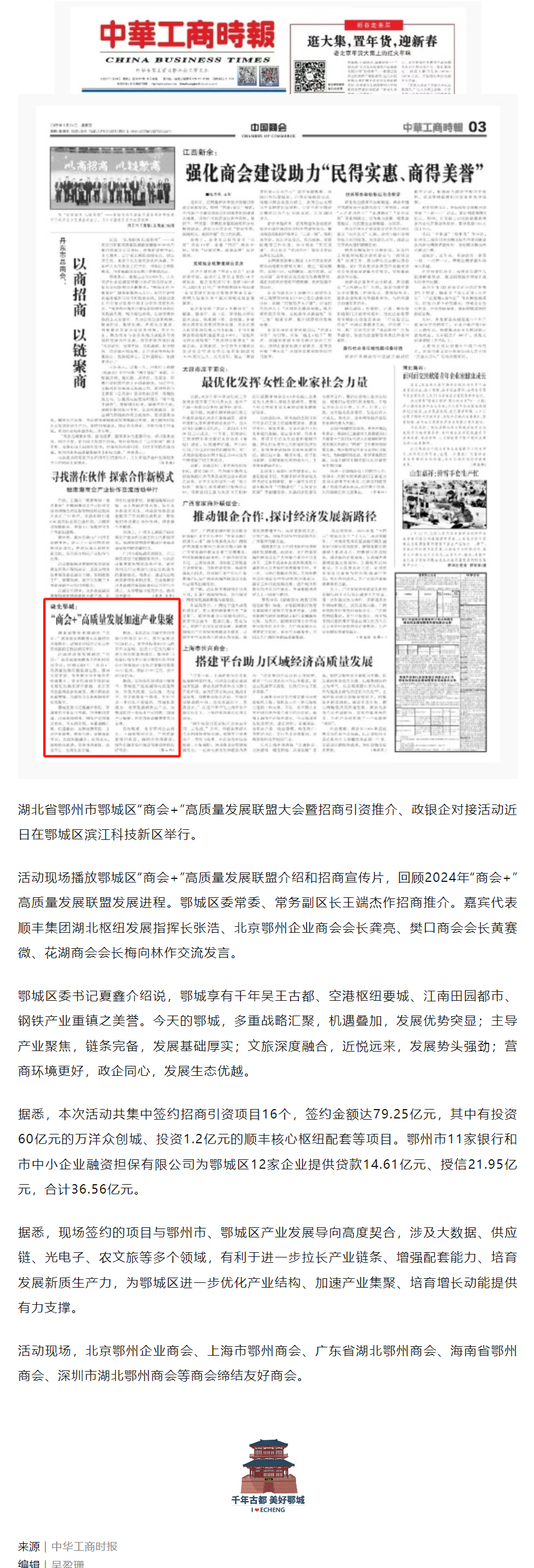 中华工商时报:鄂州鄂城“商会+”高质量发展加速产业集聚